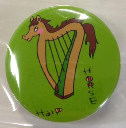 缶バッジ(アイリッシュハープ×干支)うま