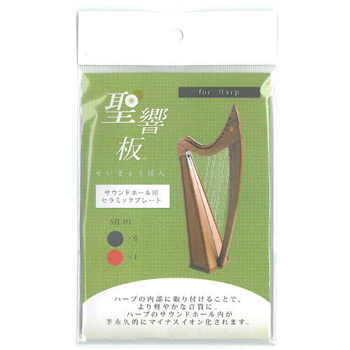 空気のクラスターを細かくして、イオン化する鉱石をブレンドし、セラミックとして焼き上げたプレートです。マイナスイオンの発生量は自然の状態の約1000倍になります。このプレートをサウンドホールに取り付けることで、マイナスイオンを半永久的に発生しつづけます。